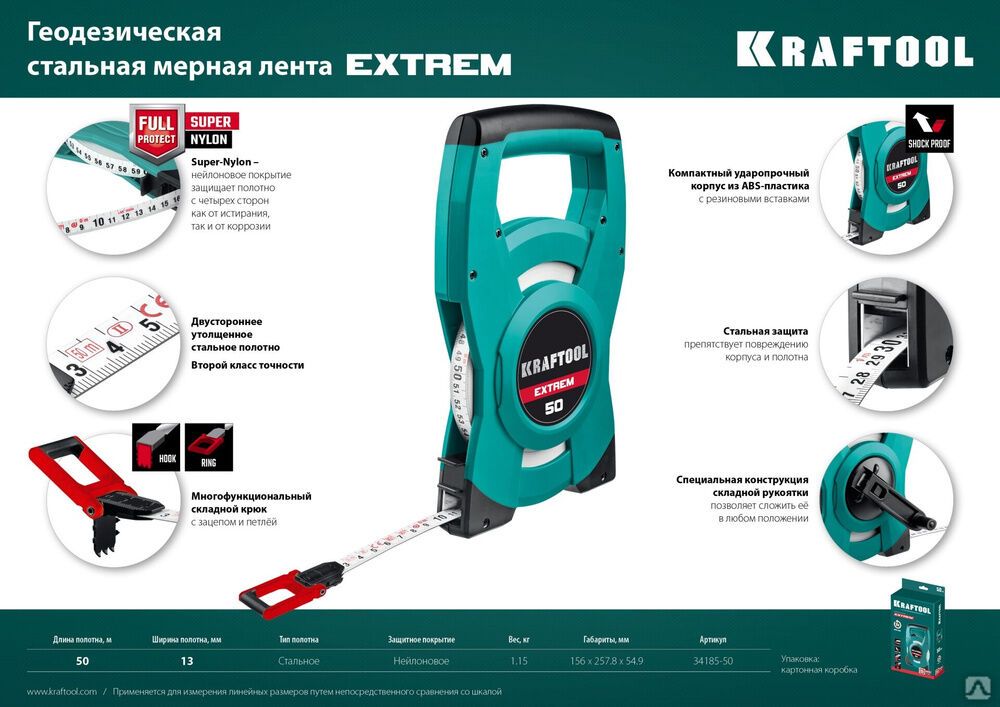 Читать все статьиМерная лента Геодезическая стальная KRAFTOOL EXTREM 50 м