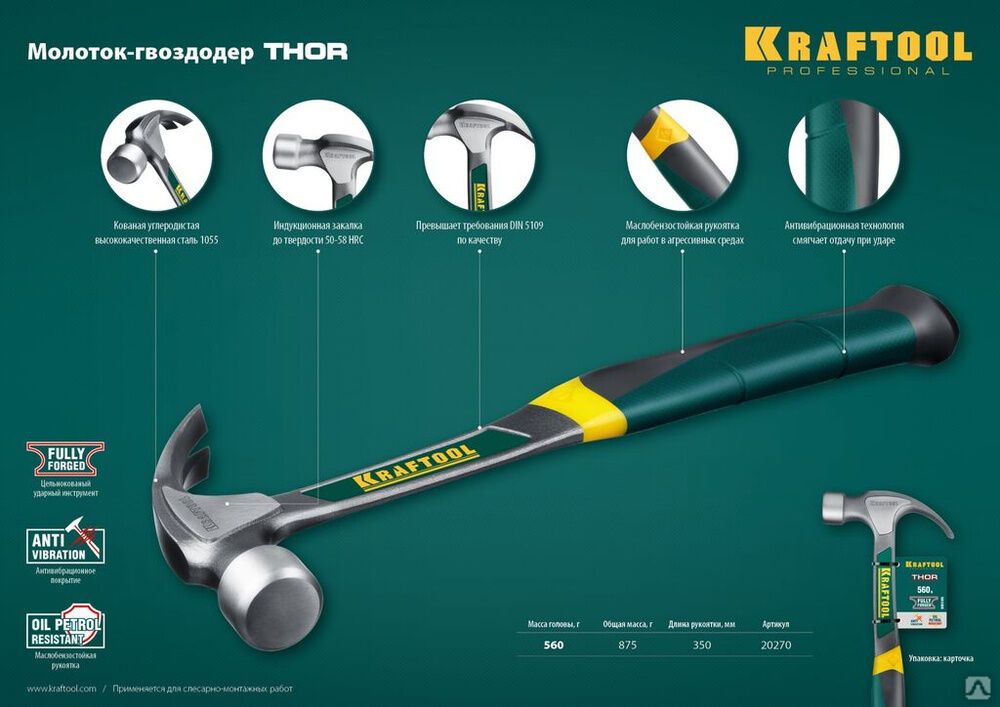 Читать все статьиМолоток-гвоздодёр цельнокованый столярный KRAFTOOL THOR 560 г