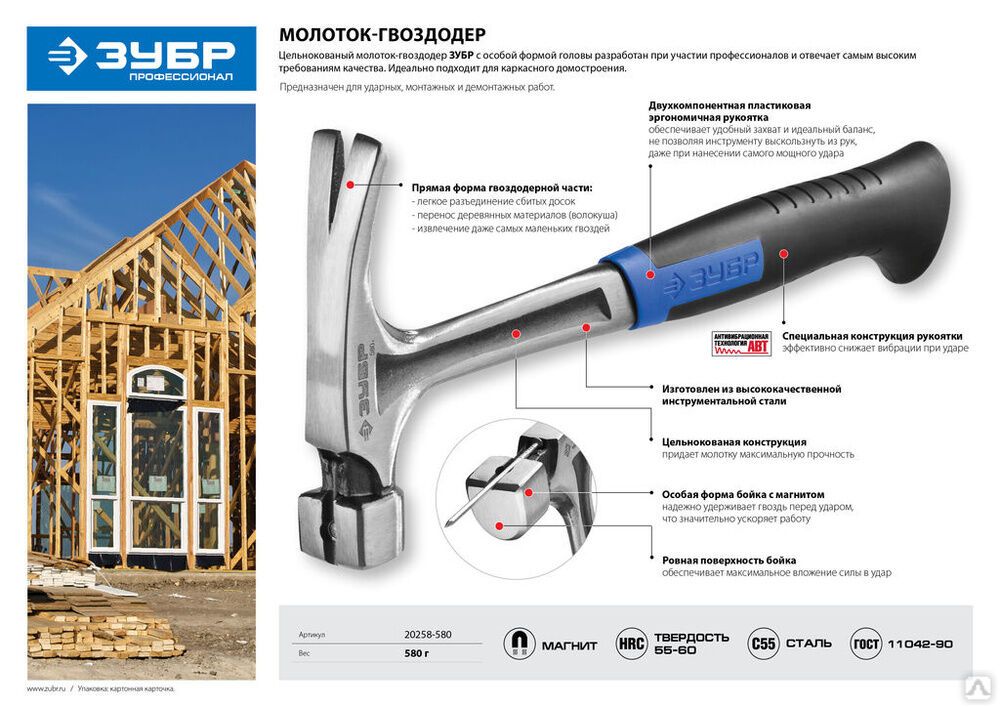 Читать все статьиМолоток-гвоздодёр цельнокованый столярный ЗУБР ТИТАН 580 г