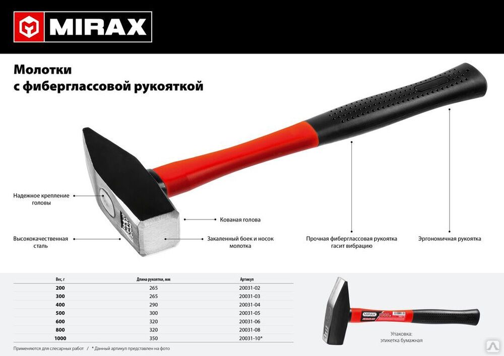 Читать все статьиМолоток с фиберглассовой рукояткой MIRAX 800