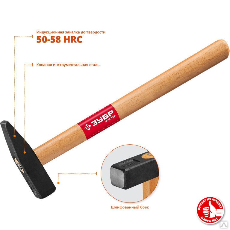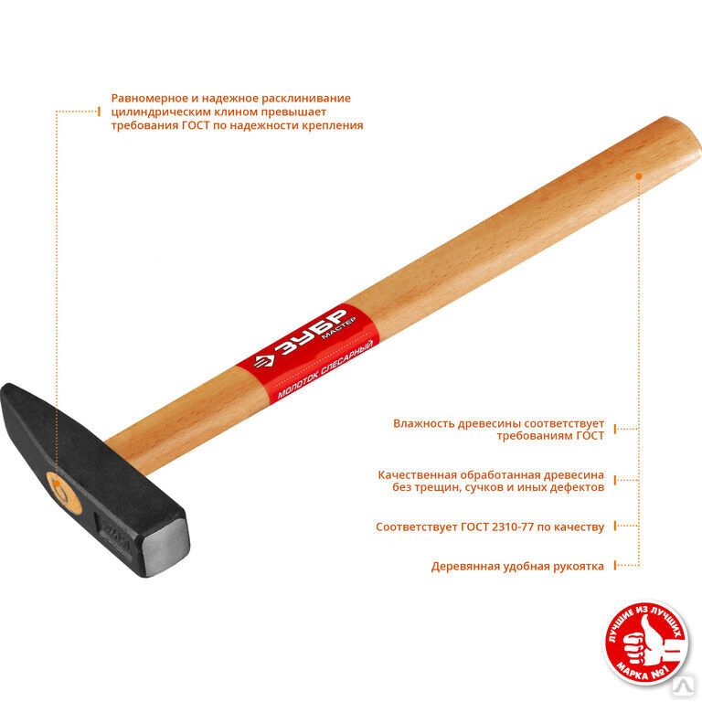 Читать все статьиМолоток слесарный с деревянной рукояткой ЗУБР 300 г
