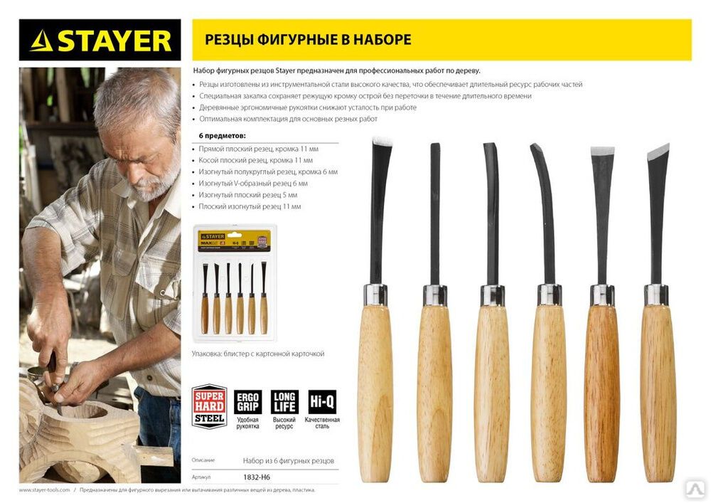 Читать все статьиНабор STAYER Резцы фигурные, с деревянной ручкой, 6 шт