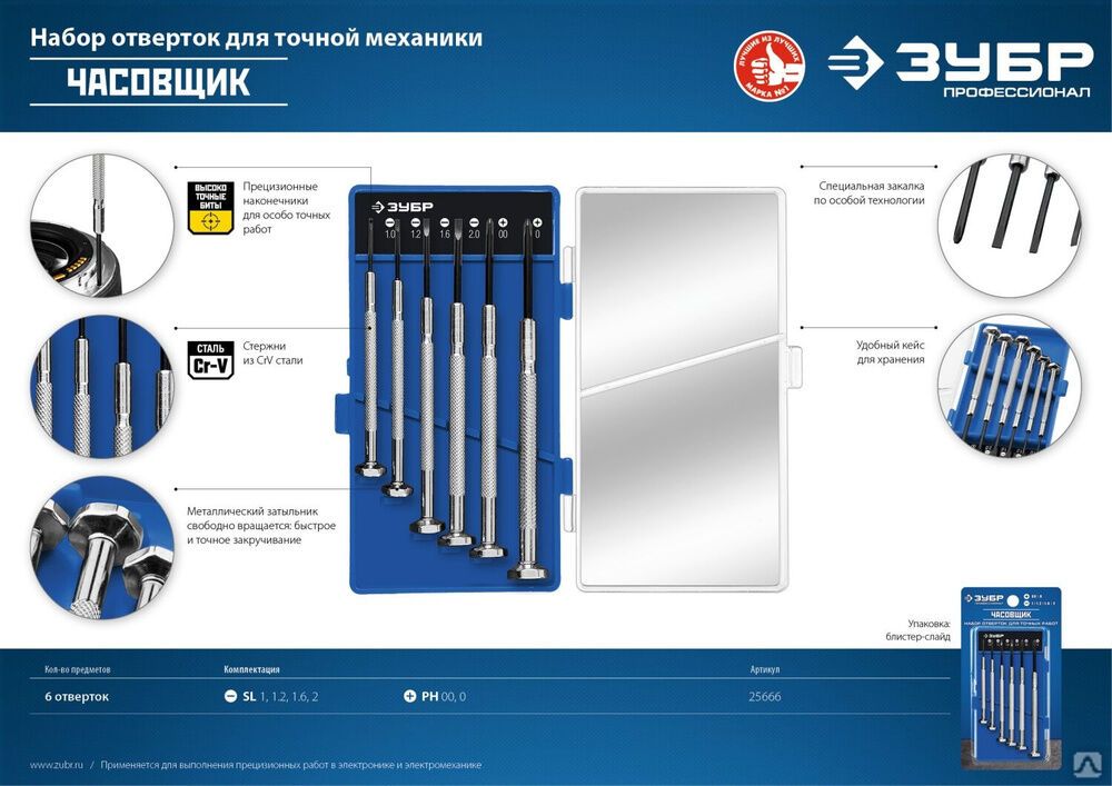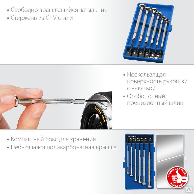 Читать все статьиНабор часовых отверток 6 предметов ЗУБР ЧАСОВЩИК