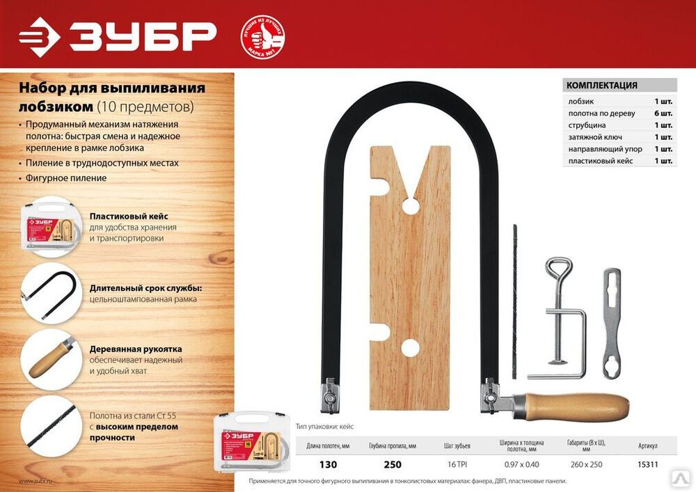 Читать все статьиНабор для выпиливания 10 предметов ЗУБР Мастер, 130х250 мм