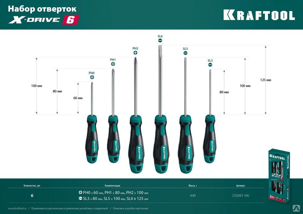 Читать все статьиНабор отверток 6 шт KRAFTOOL Х-Drive-6