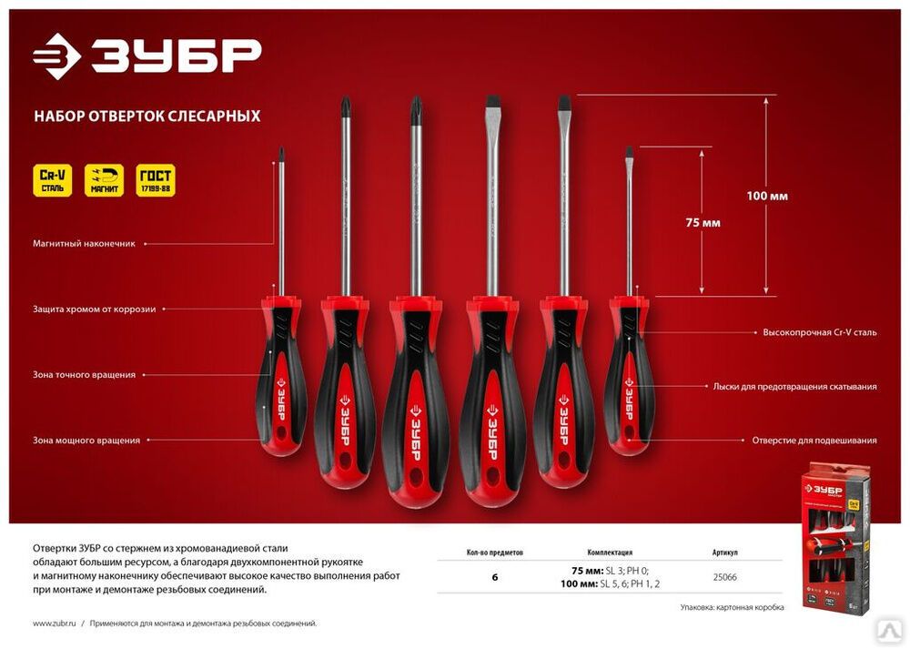 Читать все статьиНабор отверток ЗУБР Мастер-6 6 шт