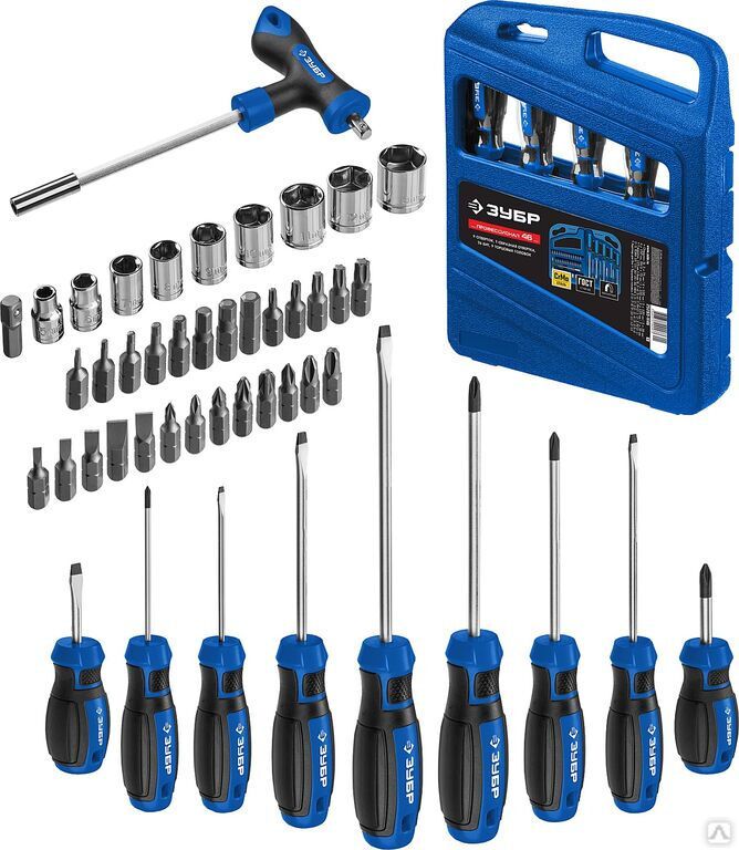 Читать все статьиНабор отверток ЗУБР Профессионал-46 с насадками 46 шт