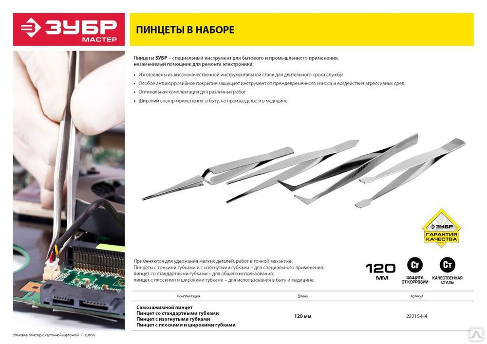 Читать все статьиНабор пинцетов ЗУБР 120 мм