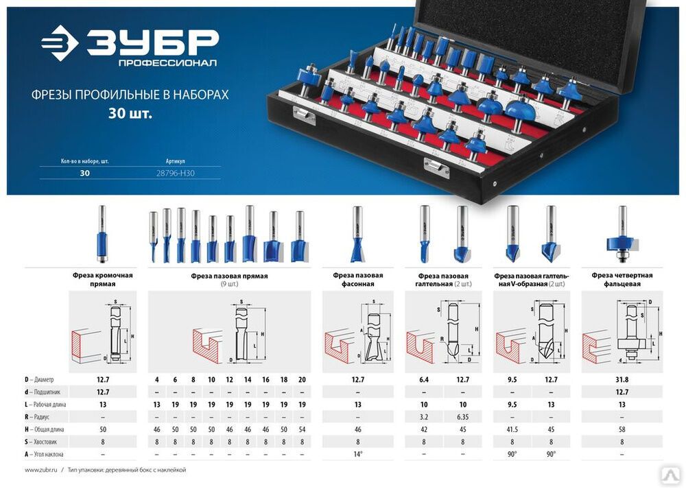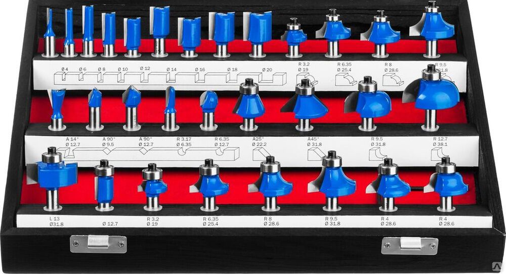 Читать все статьиНабор профильных фрез по дереву ЗУБР 30 шт