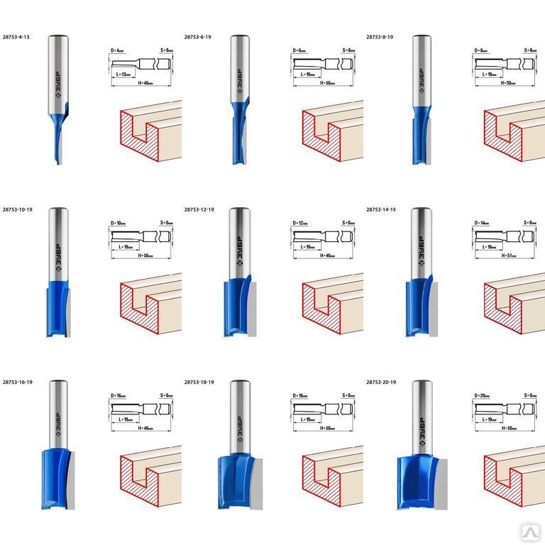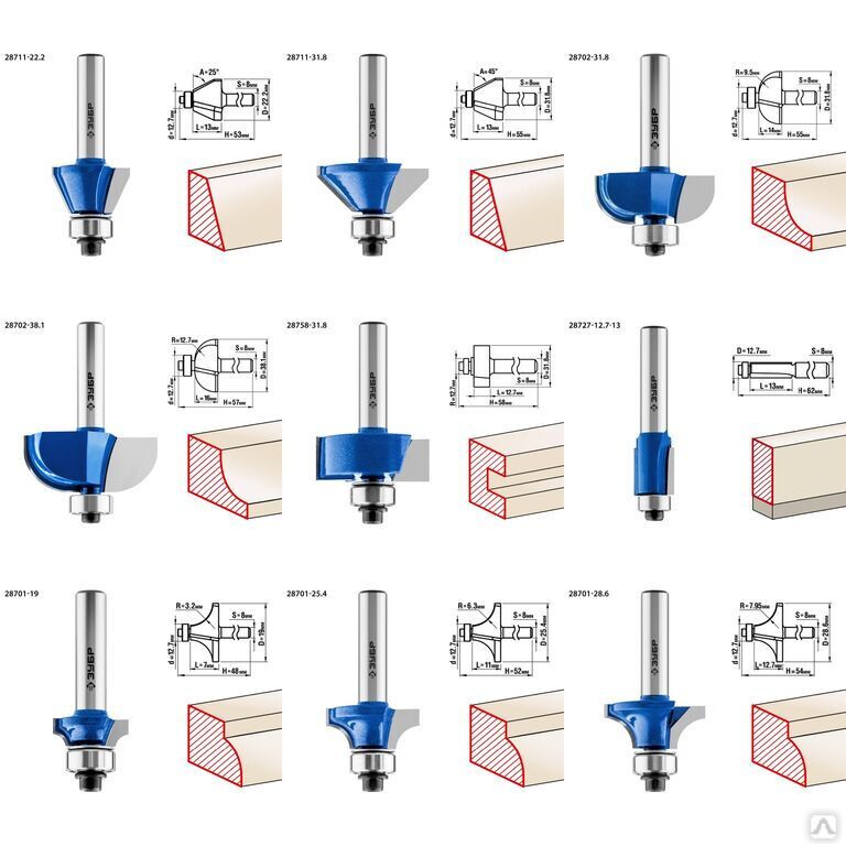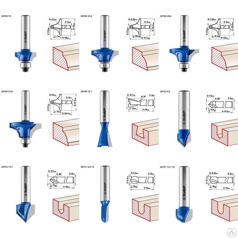 Набор фрез отлично подходит для профилирования кромок, изготовления декоративных пазов и рисунков, фрезерования канавок при работе с различными видами древесины.