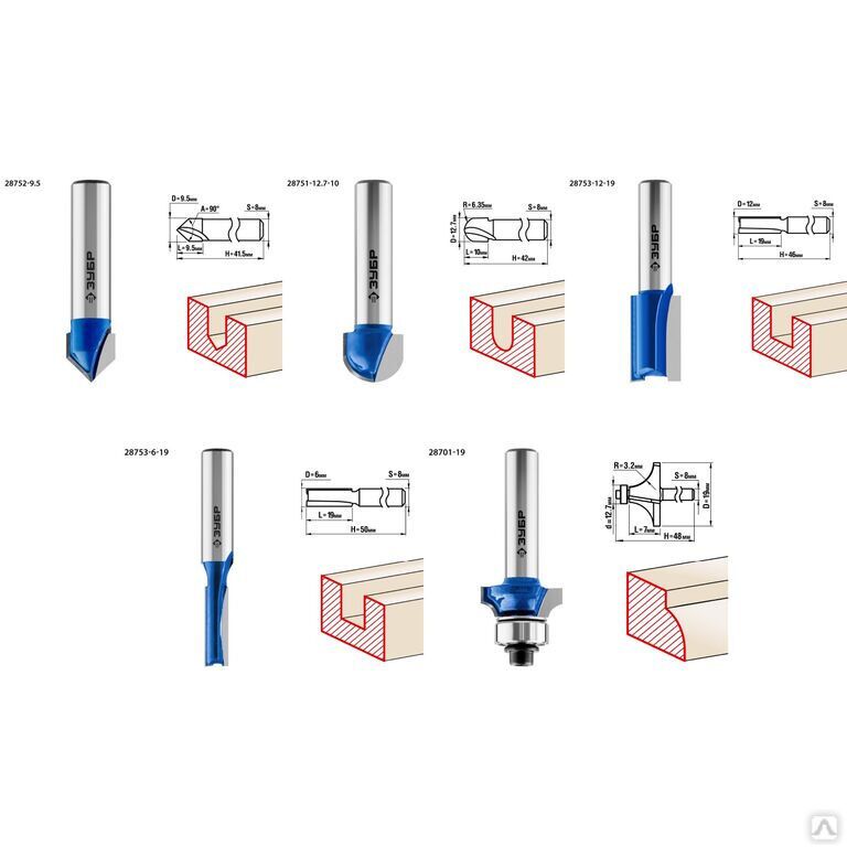 Читать все статьиНабор профильных фрез по дереву ЗУБР 5 шт
