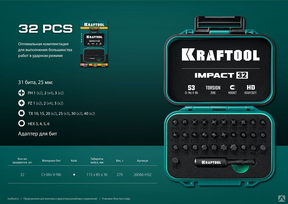 Читать все статьиНабор ударных бит KRAFTOOL 32 шт IMPACT-32