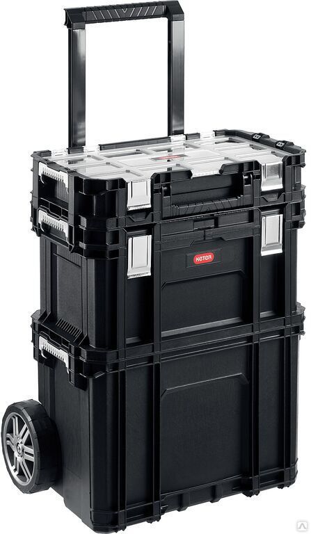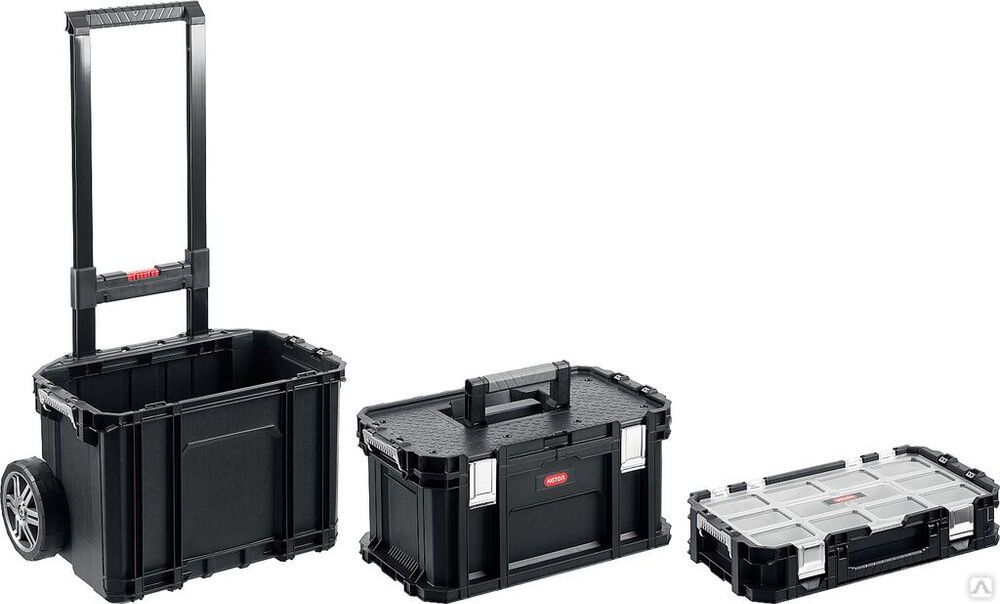 Набор ящиков на колесах предназначен для хранения и транспортировки различных инструментов и рабочих принадлежностей.
