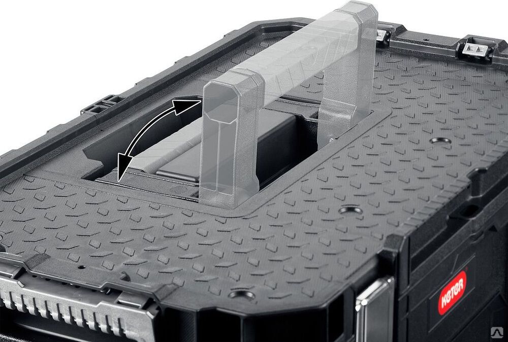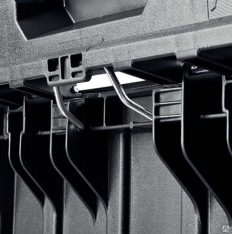 Данная модель оснащена специальными боковыми защелками для надежной фиксации блоков между собой. Это позволяет создать единую надежную конструкцию и перевозить большие объемы инструмента.