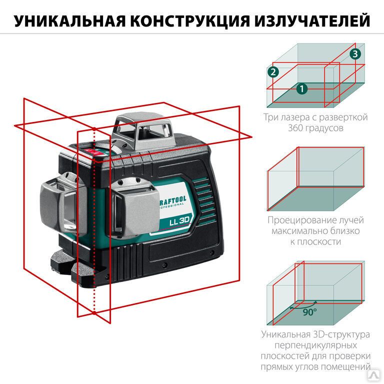 Читать все статьиНивелир лазерный, в коробке KRAFTOOL LL 3D