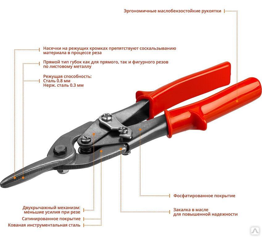 Ножницы по металлу, режущая способность: сталь 0.8 мм, нерж . 0.3 мм