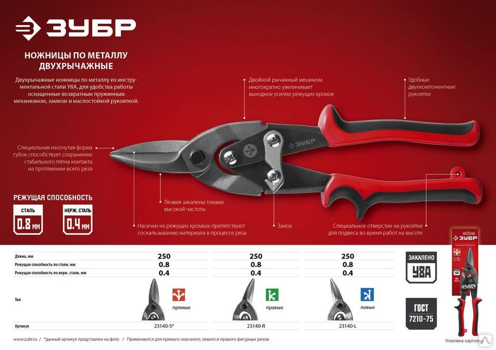 Читать все статьиНожницы по металлу ЗУБР Правые, 250 мм