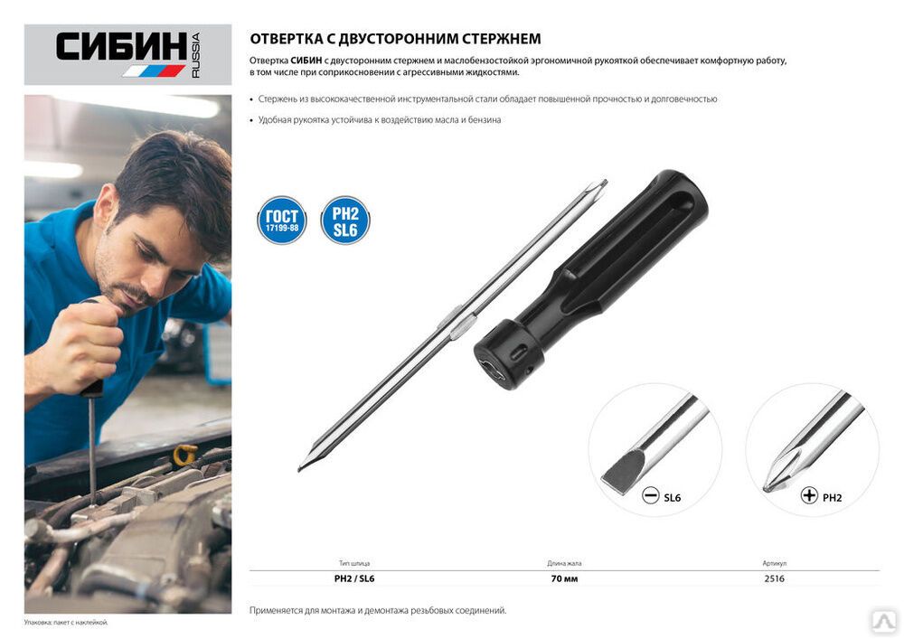 Читать все статьиОтвертка СИБИН PH2 / SL6 переставная