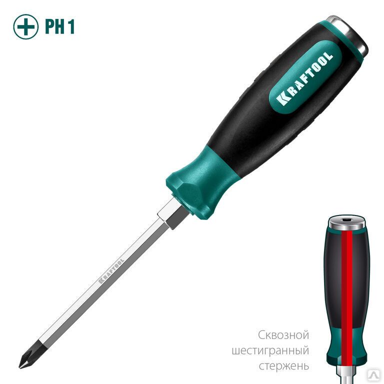Читать все статьиОтвертка Ударная Kraftool PH 1, сквозной стержень Cr-Mo IMPACT