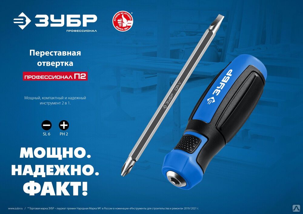 Читать все статьиОтвертка ЗУБР ПРОФЕССИОНАЛ-П2 переставная SL6 / PH2