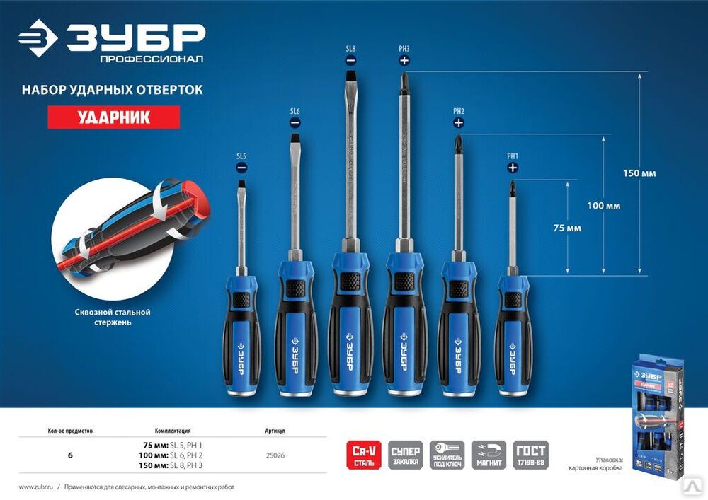 Читать все статьиОтвертки ударные ЗУБР Профессионал набор