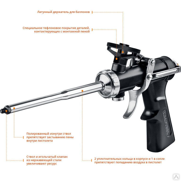 Читать все статьиПистолет для монтажной пены цельнометаллический профессиональный KRAFTOOL GRAND