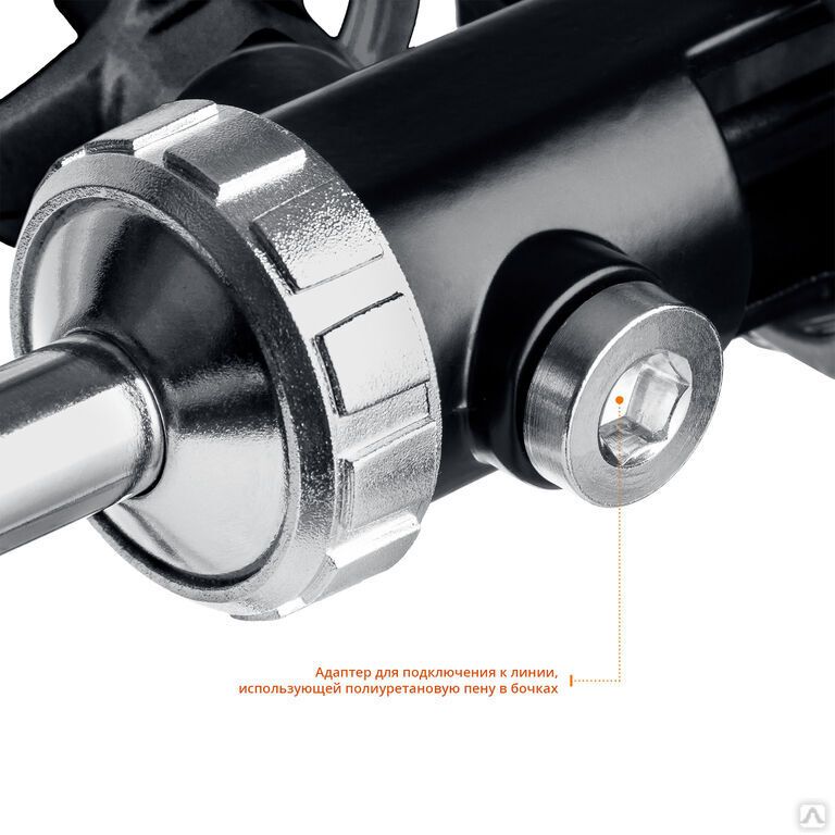 Комплектуется адаптером для подключения к линии, использующей полиуретановую пену в бочках