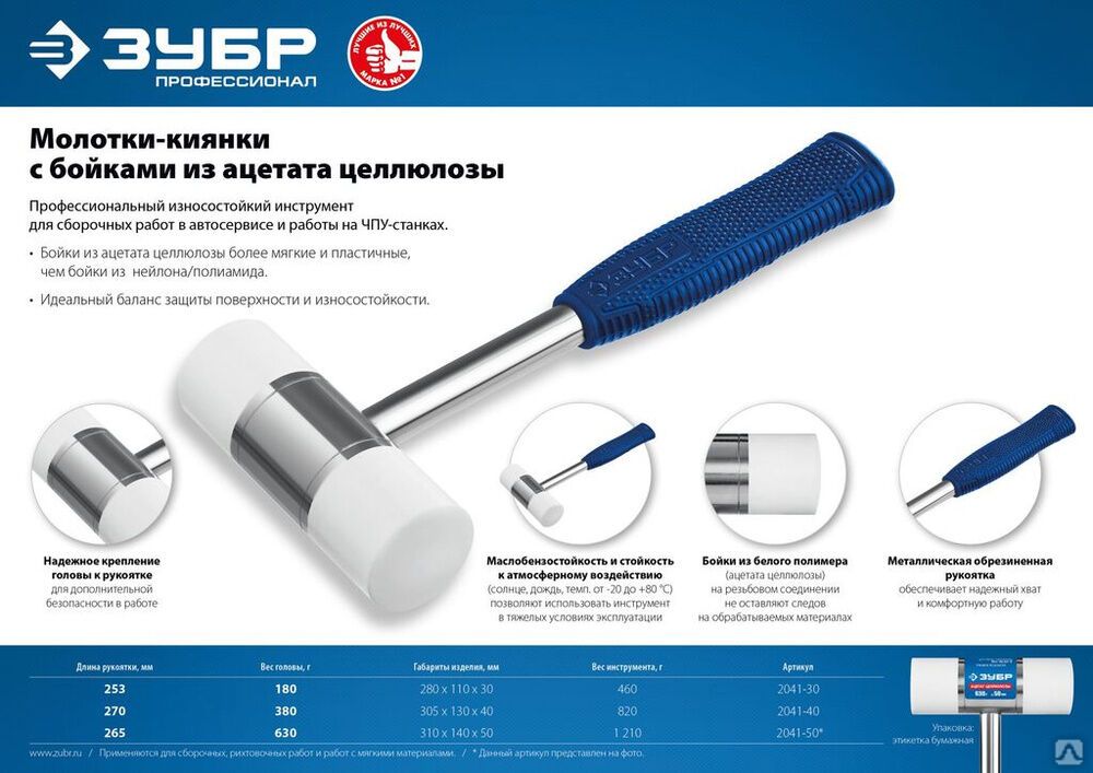 Читать все статьиПолимерными бойками ЗУБР 380 г 40 мм Молоток-киянка с
