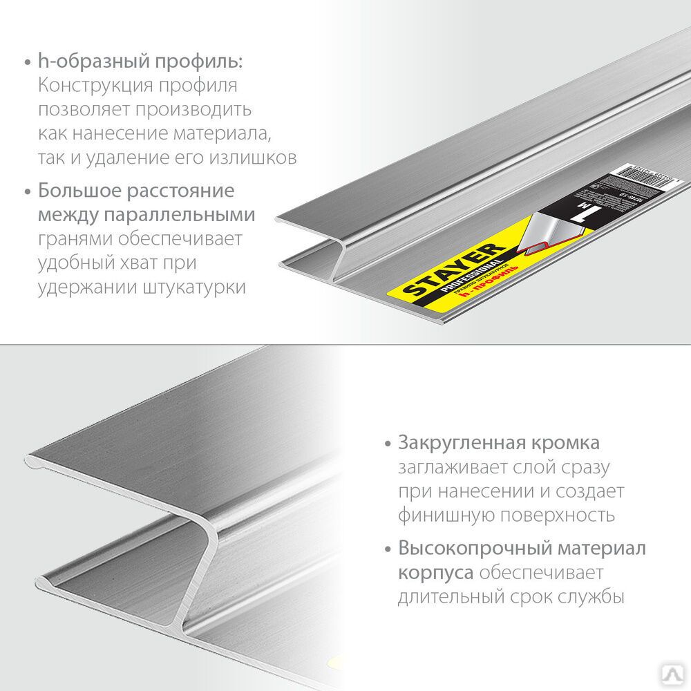 Прочность и удобство – основные достоинства правил STAYER. Конструкция профиля позволяет производить как нанесение материала, так и удаление его излишков.