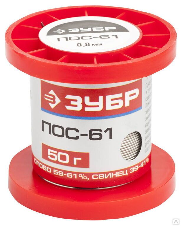 Читать все статьиПрипой ЗУБР, ПОС 61, проволока, 50г, 0,8 мм