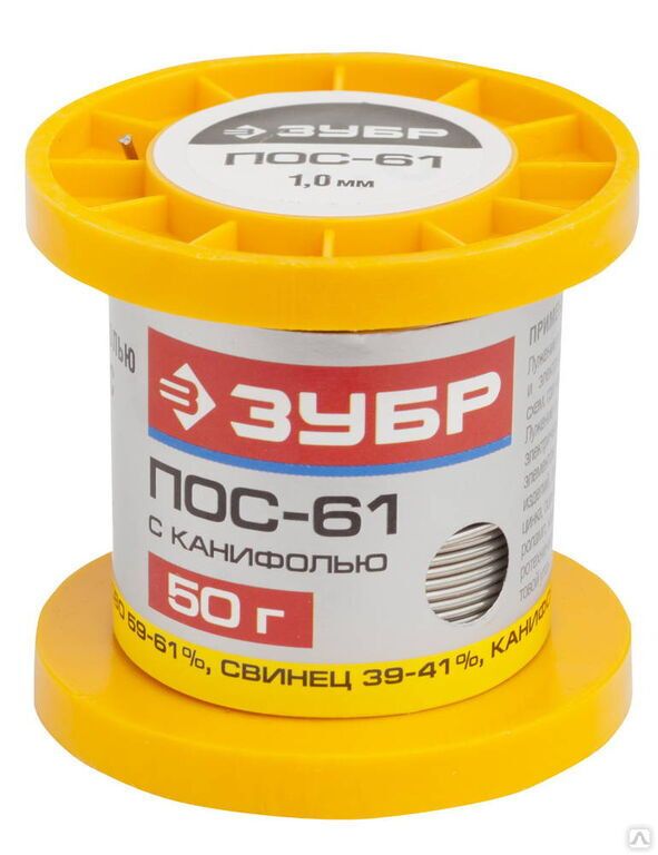 Читать все статьиПрипой ЗУБР, ПОС 61, трубка с канифолью, 50г, 1 мм