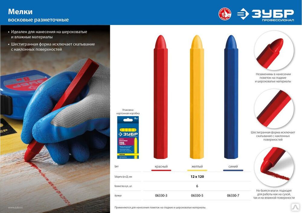 Читать все статьиРазметочные восковые мелки ЗУБР, синие, 6 шт, серия Профессионал