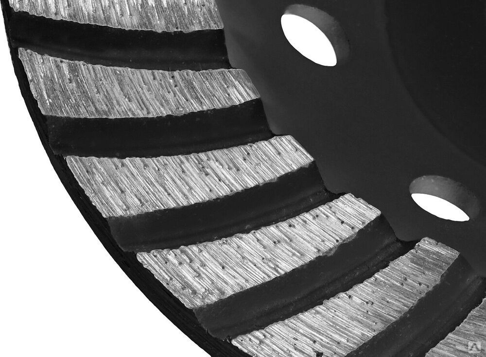 Высота алмазных сегментов 5 мм обеспечивает продолжительный рабочий ресурс шлифовальной чашки (до 700 квадратных метров площади).