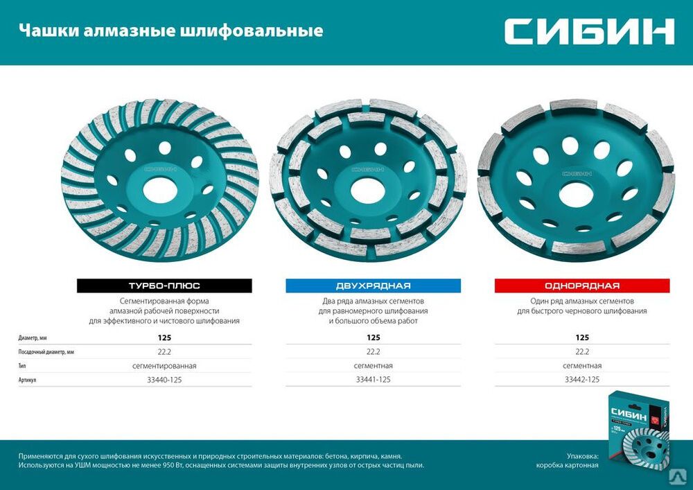 Читать все статьиСегментированная алмазная чашка СИБИН Турбо d 125 мм
