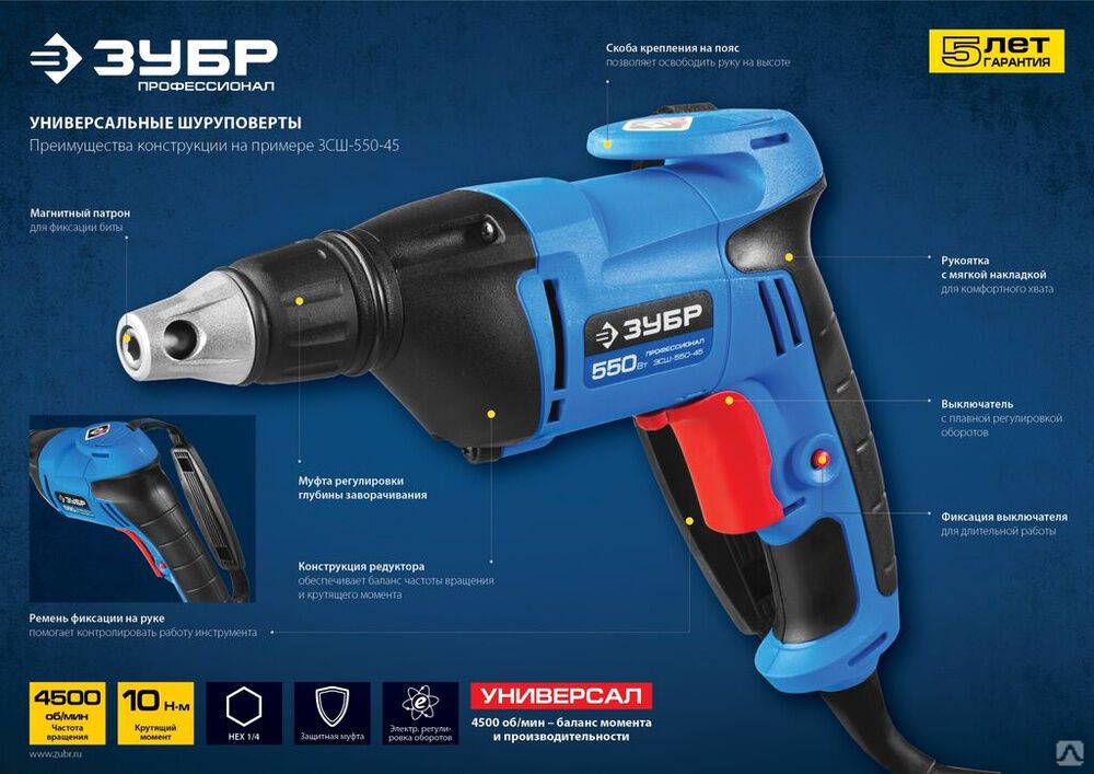 Читать все статьиСетевой шуруповерт, 730 Вт ЗУБР ЗСШ-730-45