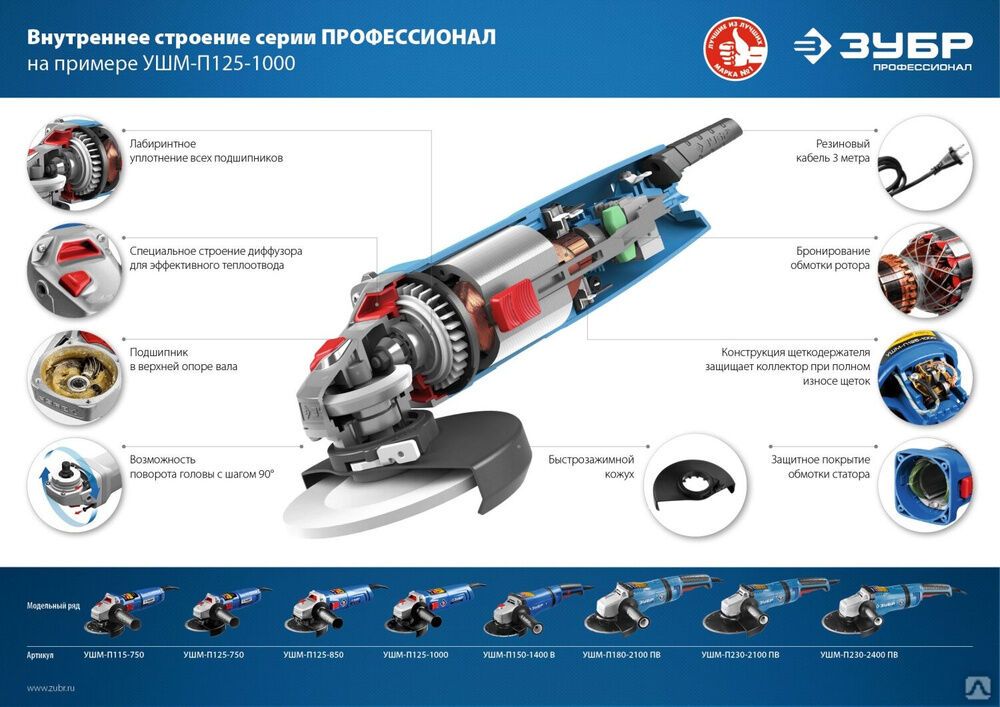 Читать все статьиШлифмашинка угловая 230 мм, 2400 Вт, серия Профессионал ЗУБР
