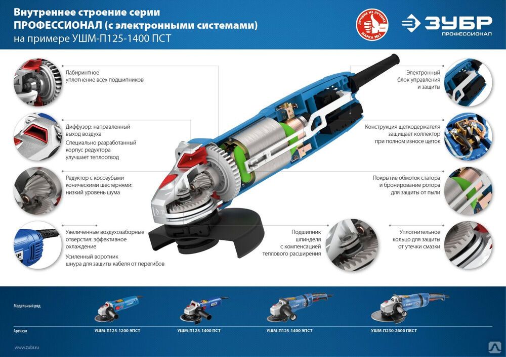 Читать все статьиШлифмашинка угловая 230 мм, 2600 Вт, серия Профессионал ЗУБР