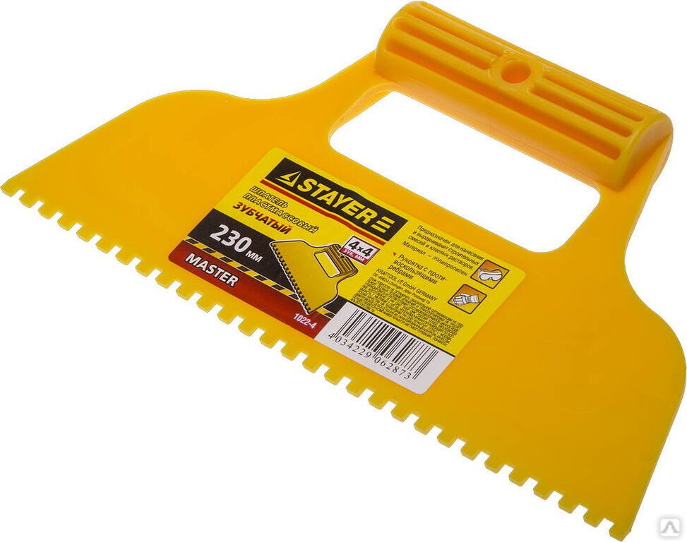 Читать все статьиШпатель STAYER, пластмассовый, зубчатый 4х4 мм, 230 мм