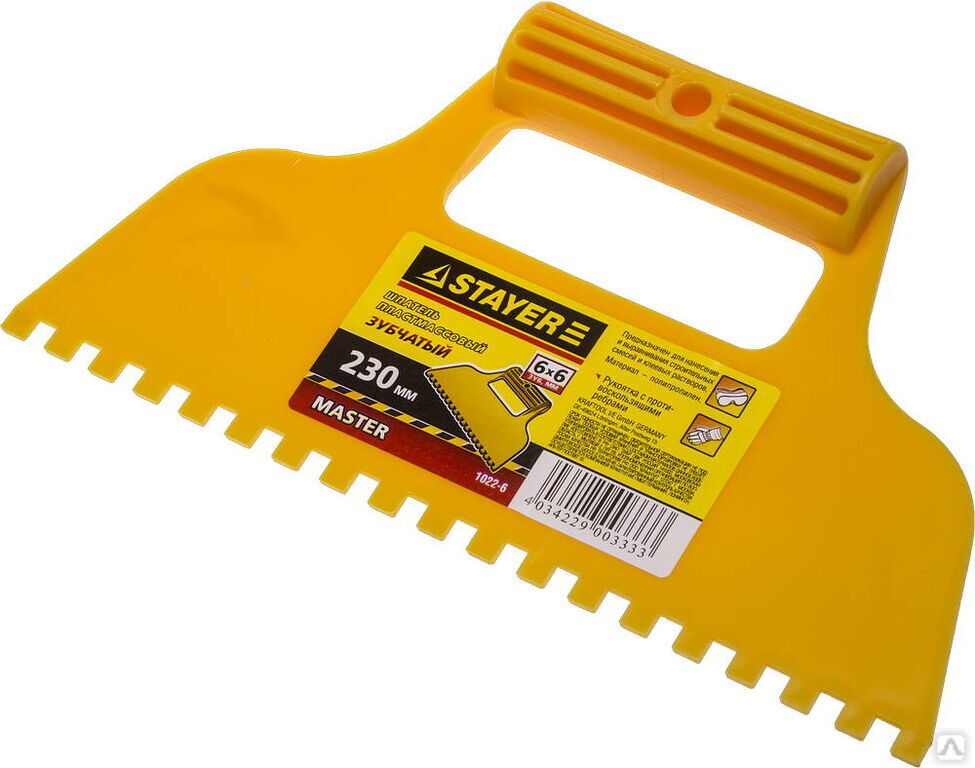 Читать все статьиШпатель STAYER, пластмассовый, зубчатый 6х6 мм, 230 мм
