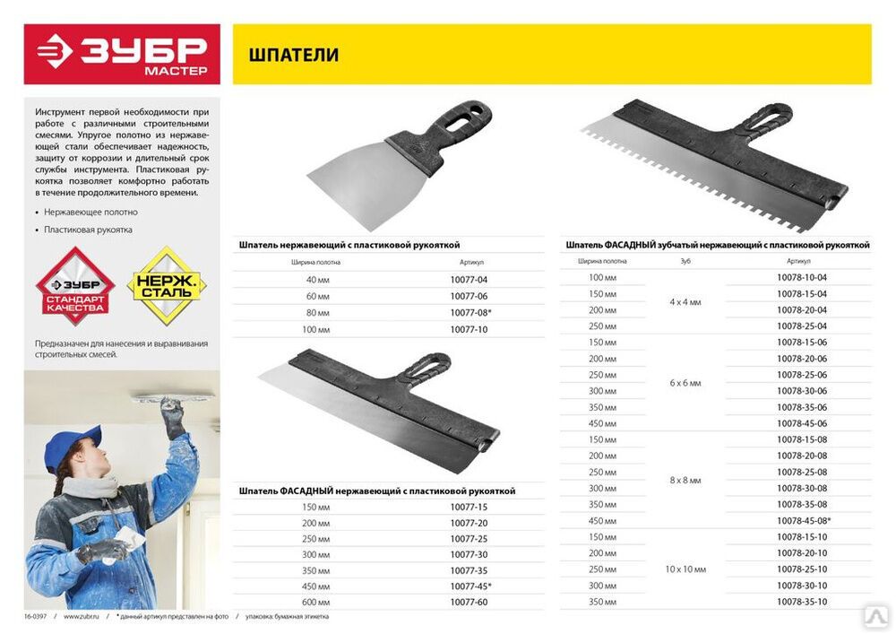 Читать все статьиШпатель ЗУБР Мастер ФАСАДНЫЙ нержавеющее полотно, 300 мм