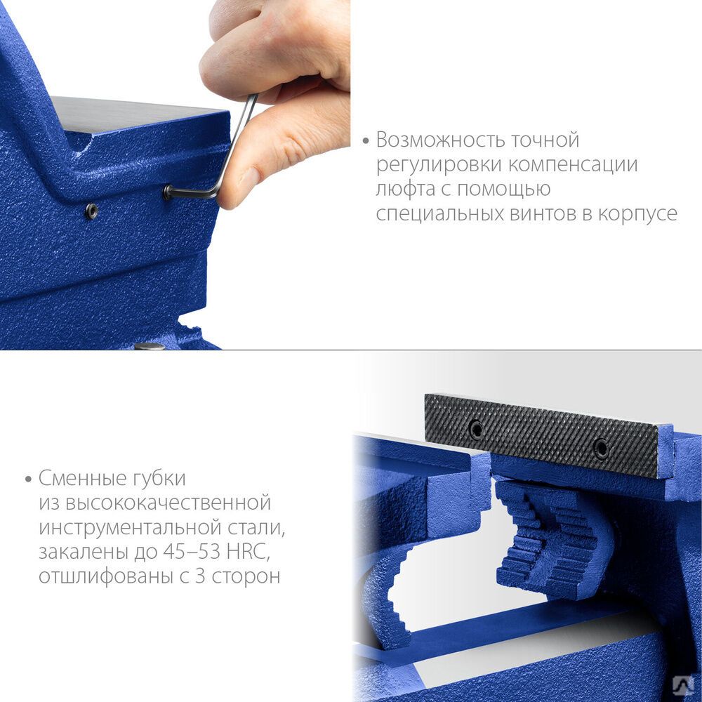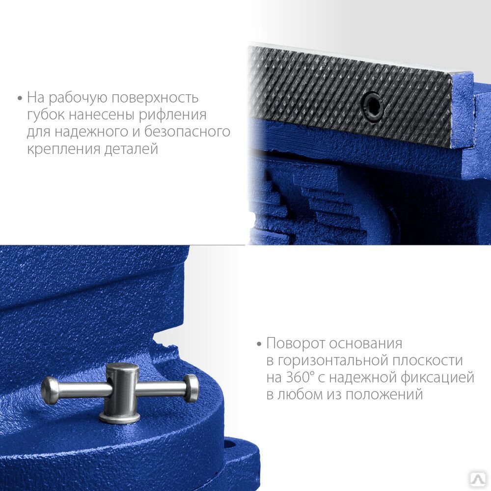 Поворотное основание позволяет перемещать корпус тисков в горизонтальной плоскости на угол от 0 до 360 градусов