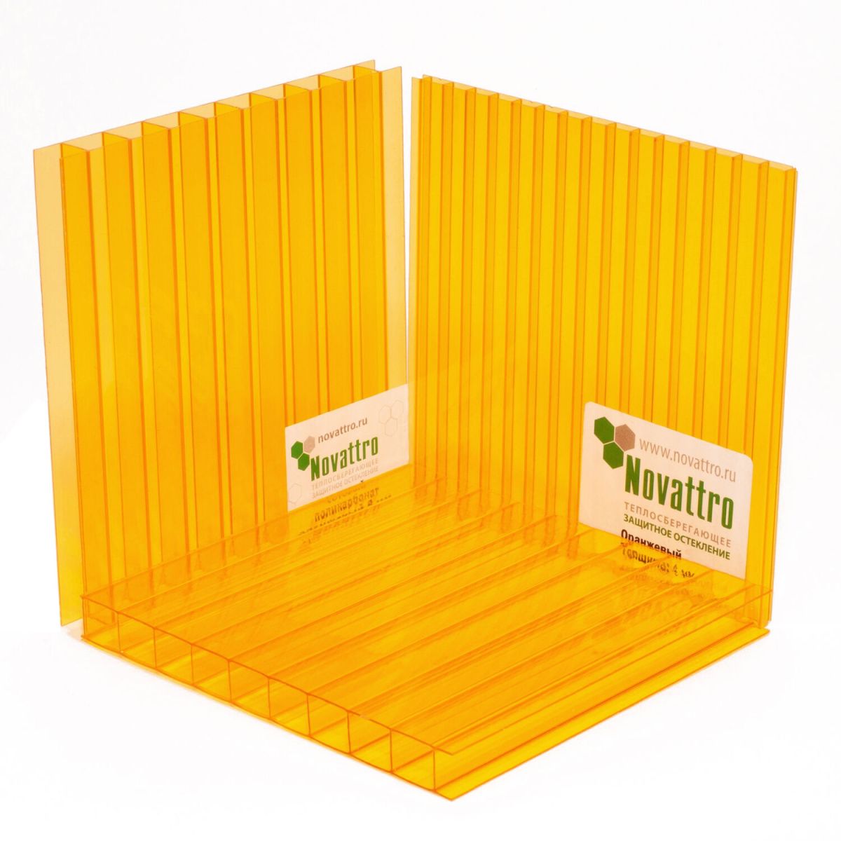 Читать все статьиСотовый поликарбонат Novattro 8мм оранжевый 2100x6000мм