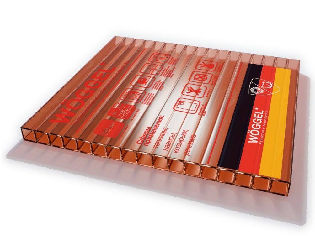 Читать все статьиСотовый поликарбонат Woggel 6мм коричневый 2100x6000мм Kinplast