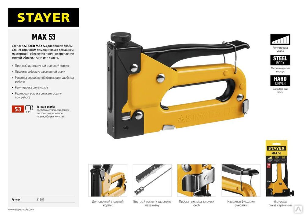 Читать все статьиСтальной степлер тип 53 4-14 мм, STAYER Max-53