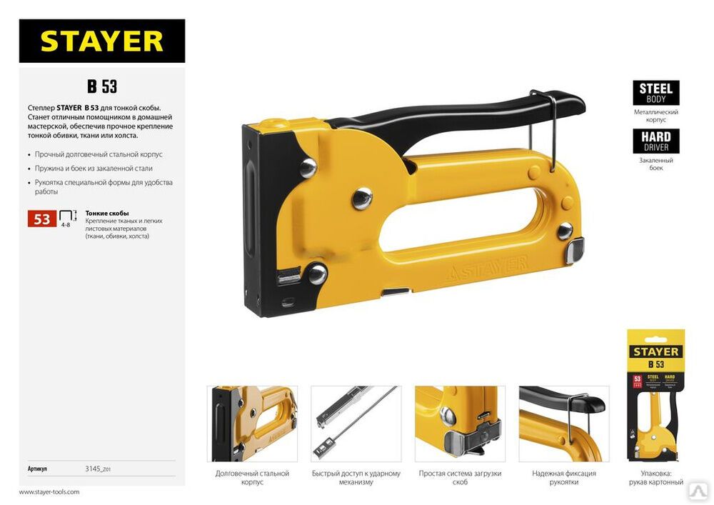 Читать все статьиСтальной степлер тип 53 4-8 мм, STAYER B-53