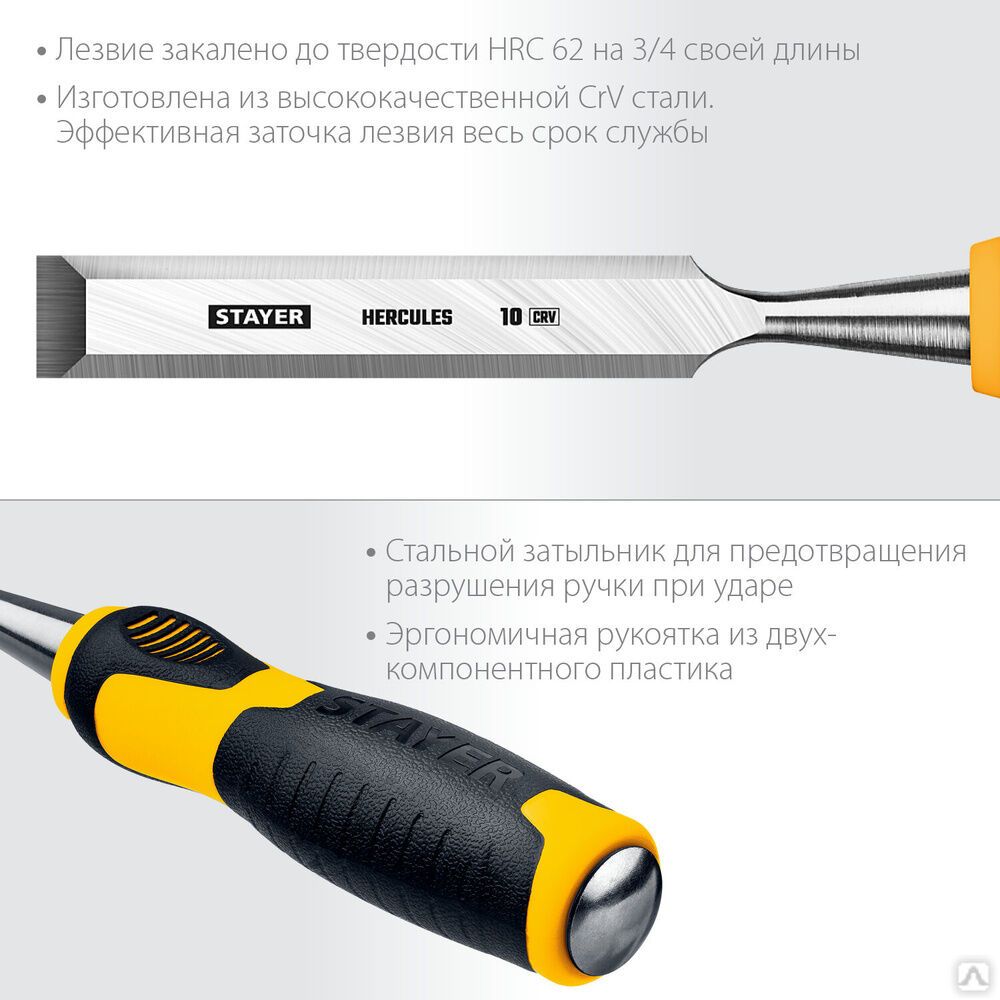 Читать все статьиСтамеска-долото с двухкомпонентной рукояткой, 10 мм STAYER HERCULES