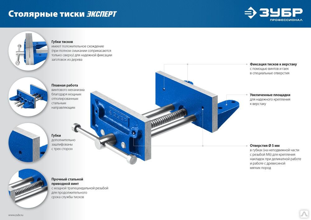 Читать все статьиСтолярные тиски ЗУБР 150 мм