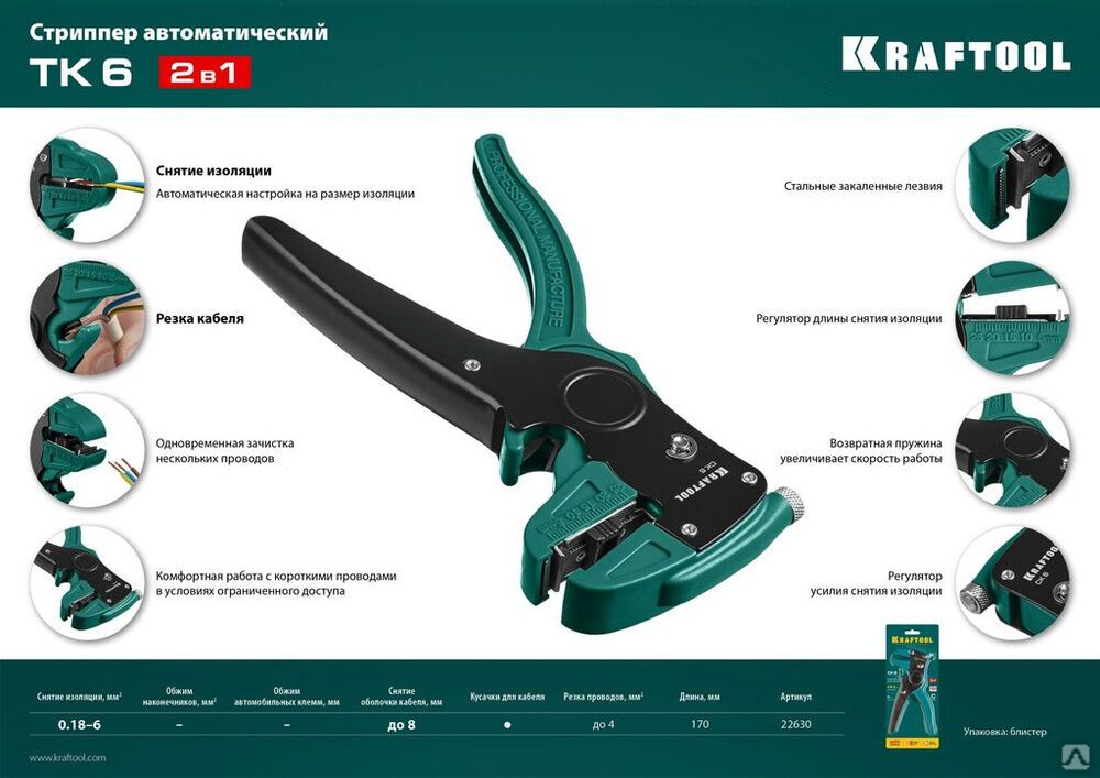 Читать все статьиСтриппер автоматический CK-6 02 - 6 мм2, KRAFTOOL