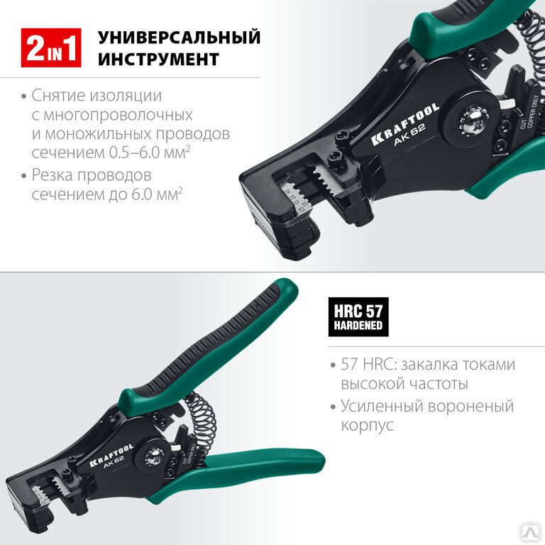 Читать все статьиСтриппер полуавтоматический АК-62, 05 - 6 мм2, KRAFTOOL