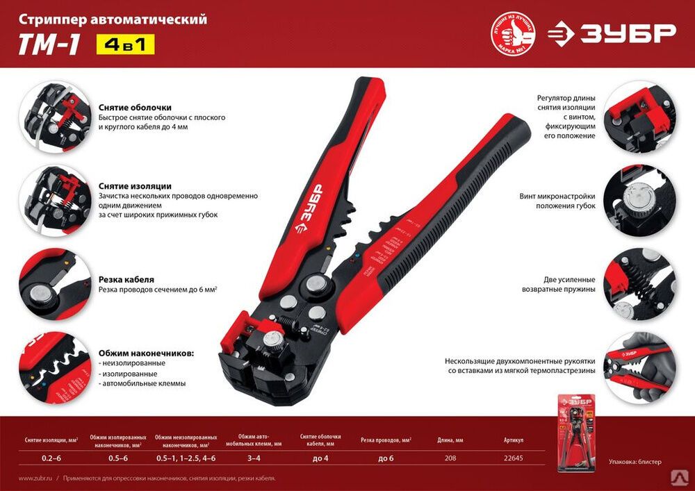 Читать все статьиСтриппер ЗУБР автоматический многофункциональный ТМ-1